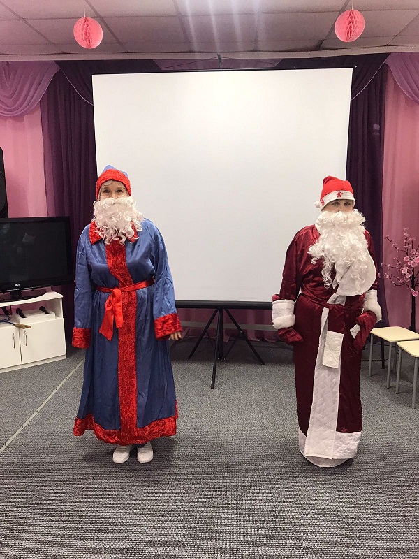 В отделение дневного пребывания пожаловали сразу два Деда Мороза. Они устроили друг с другом праздничные соревнования, исполнили попурри новогодних песен с получателями социальных услуг, разгадывали новогодние загадки, участвовали в играх и конкурсах «Ожившие стулья», «Командная елочка», «Снежкобол» и другие.