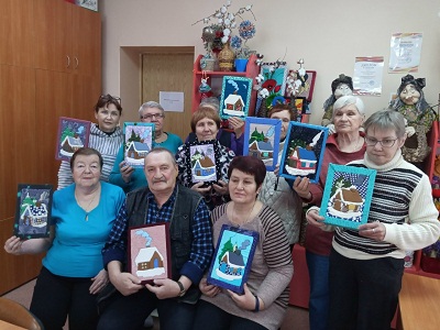 В отделении дневного пребывания царила настоящая творческая атмосфера! Инструктор по трудотерапии Наталья Мамонова провела мастер-класс для получателей социальных услуг по созданию панно «Зимняя сказка» в необычной технике — кинусайга.