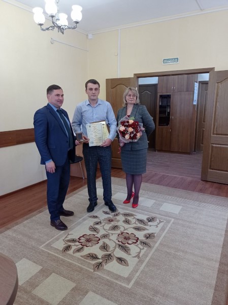 Заведующая ЗАГС Титова С.В. вручила счастливому отцу новорожденной ее первый документ – свидетельство о рождении.