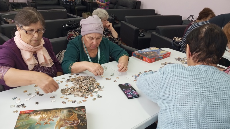 Наши обслуживаемые с увлечением собирали пазлы и помогали друг другу, и с пользой провели время. Пазлы – это замечательное занятие как для детей, так и для взрослых. Сейчас существует большой выбор развивающих пазлов. С помощью этих головоломок можно познавать любую науку в игровой форме. Все любят собирать пазлы, а в большой компании это вдвойне интересней.