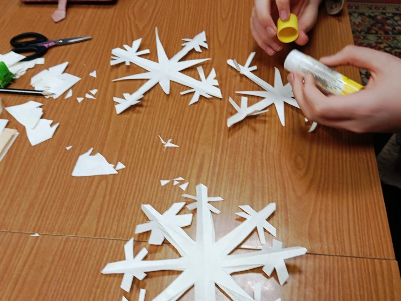 Вырезание из бумаги снежинок - очень увлекательное занятие. Чтобы вырезать узор, можно предварительно нанести рисунок, а можно вырезать и без рисунка, наугад причудливо поворачивая ножницы вправо, влево. Сегодня прошло занятие с ребёнком по такому несложному узору. Теперь снежинки будут украшать его стены, окна, занавески.