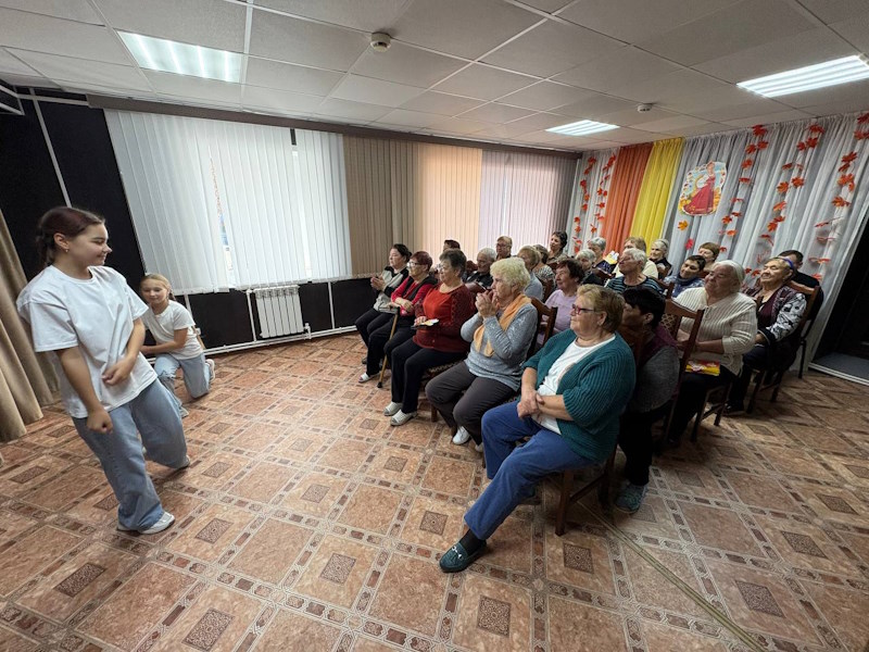 В течении всего мероприятия для старшего поколения звучали душевные слова поздравлений, музыкальные композиции, стихи. Также Нина Николаевна Лавриненко подняла настроение гостям «монологом пенсионерки». В стороне не осталось и младшее поколение – поздравили гостей «серебряного» возраста зажигательным танцем.