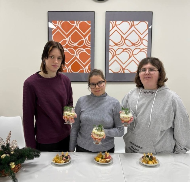 В преддверии новогодних праздников наши девчата проявили чудеса кулинарного искусства на Учебной кухне. Девочки учились готовить салат Оливье и изысканные канапе, превращая обычные продукты в настоящие произведения гастрономического искусства.